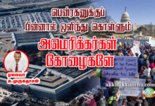 அமெரிக்க அரசியல் கட்டமைப்பும் அமெரிக்க மக்களும் கோழைத்தனமானது என்பதில் எவ்வித சந்தேகமுமில்லை. ஏனெனில் அவர்கள் பென்ரகனுக்குப் பின்னாலும்,ரொக்கட்டுகளுக்குப் பின்னாலும் ஆயுதங்களுக்குப் பின்னாலும் ஒளிந்து கொண்டு சண்டித்தனம் காட்டுபவர்கள்.…