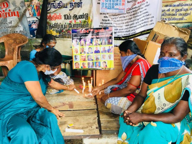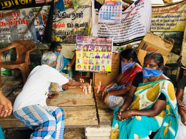 இந்த நிலையில் கொரோனா வைரஸ் தாக்கத்தினால் உயிரிழந்த உலக மக்களுக்கும், குறிப்பாக புலம்பெயர் உறவுகளின் ஆத்ம ஈடேற்றத்துக்கு தமது போராட்டப் பந்தலில் நேற்று 16.04.2020 வியாழக்கிழமை அன்று 1154 ஆவது நாளில், மெழுகுவர்த்திகள் ஏற்றி தமிழர் தாயக சங்கத்தினர்
