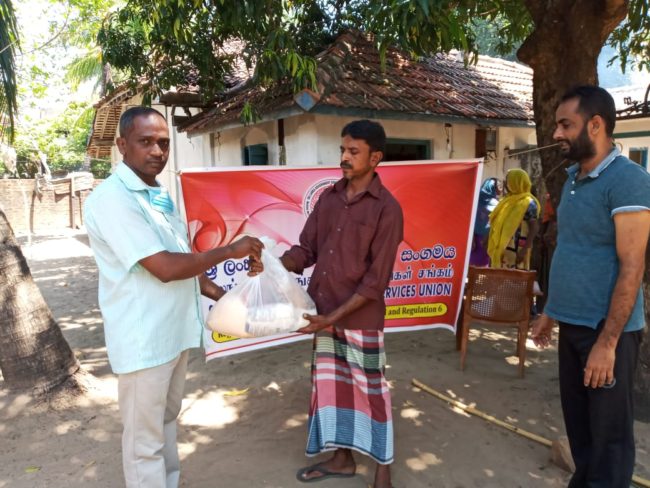 இலங்கை அரசாங்க பொதுச்சேவைகள் சங்கம் இன்று(01) தொழிலாளர்கள் தினத்தில் கொரோனா ஊரடங்குச் சட்டத்தினால் தொழிலை இழந்த குடும்பங்களுக்கு நிவாரணப்பொருட்களை வழங்கிவைத்தது.