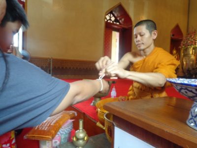 வெளிப்படுத்துவார்கள். வரும் தேரர்கள் வீட்டுரிமையாளரின் கரத்தில் மந்திரித்த நூலை கட்டிவிடுவார்கள்.![]()