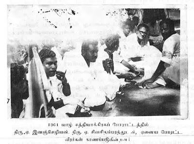 தமிழ் அரசியல் தலைவர்கள், தமிழ்மக்களையும் இணைத்துக்கொண்டு அறப்போரைத் தொடங்கிய காலம்தான் அது. கொழும்பில் பழைய நாடாளுமன்றத்திற்கு முன்பாக காலிமுகத்திடலில் தமிழ்த்தலைவர்கள் சத்தியாக்கிரகப்போரை தொடங்கியதையும் பொலிஸார் தடி அடிப்பிரயோகம் நடத்தி அறப்போராளிகளை கலைத்ததையும் அறிவீர்கள். இதுபற்றி பிறகு பல வரலாற்றுக்கட்டுரைகள் , நூல்கள் வெளிவந்துள்ளன.