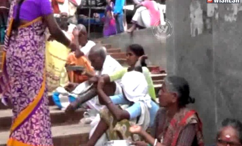 கோவில் வாசலுக்கு வெளியிலும் ஒருவர் கையில் தட்டு