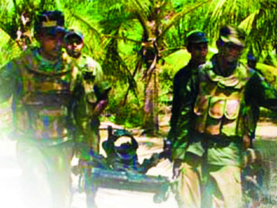 புதர்ப்பற்றைக்குள் இருந்து வெளியே நீட்டிக் கொண்டிருந்தது ஒரு பெண்ணின் உடல். பாதங்கள் பற்றைக்குள் மறைந்திருந்தன. உடலும் முகமும் ஊதிப் பருத்து, ஆடைகள் கலைந்து அம்மணமாக, விழிகள் நிலை குத்தி இறுதிவரை மானத்தைக் காப்பாற்றப் போராடியதற்கான முகக்கீறல்களுடன் அந்த உடல் இருந்தது. உடலில் கண்டதுண்டமாக வெட்டப்பட்டிருந்த அடையாளங்கள் வெளித் தெரிந்தன.