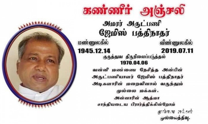 அருட்தந்தை ஜேம்ஸ் பத்திநாதர் அவர்கள் நினைவுகளாக என்றும் எம்முடனும், எந்த மக்களுக்காக அவர் வாழ்ந்தாரோ அம்மக்களின் நினைவுகளிலும் வாழ்ந்துகொண்டிருப்பார்.