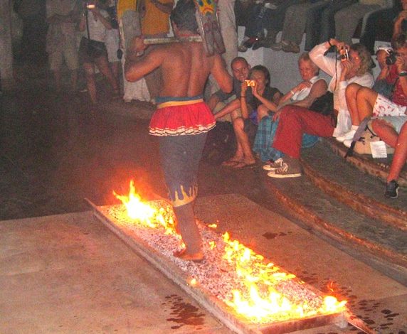 அரசமரத்திற்கு எதிராக நீண்ட அகழி ஒன்று வெட்டி மரக்குற்றிகளை அடுக்கிக் கொண்டு இருந்தார்கள். தீ மிதிப்பதற்கான ஆயத்தங்கள் தொடங்கிவிட்டன. போனமுறை நடந்த தீ மிதிப்பின் போது வேதக்காரர்களும் தீ மிதிச்சவை. நான் நினைச்சன் அவையளின்ர கால்கள் அள்ளுப்பட்டுப்போம் எண்டு. ஆனால் அவைக்கு ஒண்டும் நடக்கேல்லை. மாலைக் கருக்கலில் கனன்று கொண்டிருக்கும் நெருப்புப் பாளங்கள் மீது நடப்பதைப் பார்க்க பக்தியுடன் பயமாகவும் இருக்கும்.