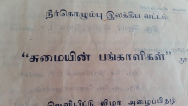 ஆனால், இலங்கை வானொலி கலைக்கோலம் நிகழ்ச்சியில் சுமையின் பங்காளிகள் பற்றிய விமர்சனம் ஒலிபரப்பானதாக எனது செவிக்கு தகவல் எட்டியிருந்தது.