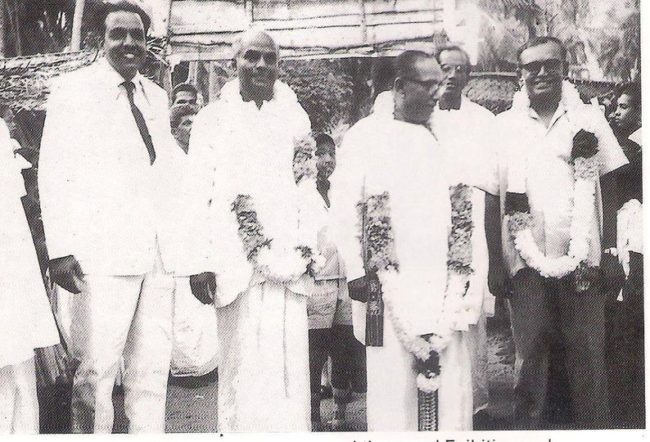(1967 ஆம் ஆண்டில் வித்தியாலயத்தில் நடைபெற்ற விஞ்ஞானப் பொருட்காட்சியைத் திறந்து வைத்த, பல்கலைக்கழக மானியக்குழுத்தலைவர் பேராசிரியர் ஜி.பி.மல்லசேகராவுடனும், பட்டிருப்புத்தொகுதி பா.உ. வும் தமிழரசுக்கட்சித் தலைவருமான திரு. சி.மூ.இராசமாணிக்கம் அவர்கள், கல்விப்பணிப்பாளர் எஸ்.தணிகாசலம் ஆகியோருடனும், அதிபர் திரு.க.அருணாசலம் அவர்கள். பின்னால் நிற்பவர் இராசசிங்கம் ஆசிரியர் அவர்கள்.)