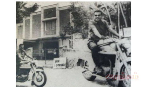(திரு நமசிவாயம் அவர்கள் தனது திரையரங்கிற்கு முன்னால் மோட்டார் சைக்கிளில்)