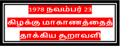 1978 ஆம் ஆண்டு நவம்பரில் கிழக்கிலங்கையை சூறாவளி கோரமாகத்தாக்கியது. வீரகேசரியில் வானிலை அறிக்கை செய்தியை ஒப்புநோக்கிவிட்டு நடு இரவு வீடு திரும்புகையில் கடற்கரை நகரமான எங்கள் ஊரிலும் அந்த சூறாவளியின் எதிரொலியை அவதானிக்கமுடிந்தது.