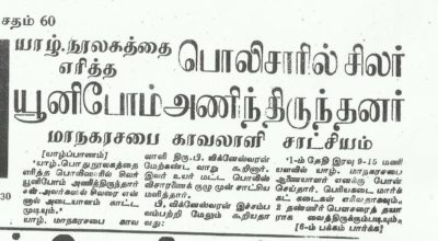 1981 ஆம் ஆண்டு ஜூன் 01 ஆம் திகதி முற்பகல் எரிந்துகொண்டிருந்த யாழ். பொது நூலகத்தைப்பார்க்கச்சென்றபோது அங்கு மிலிட்டரி பொலிஸார்தான் காவலுக்கு நின்றார்கள்.