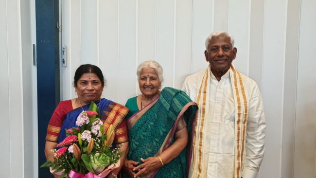 மண்டபம் திரண்ட மக்கள் மத்தியில் கணநாதன் – சகுந்தலா தம்பதியர் பேச்சாளர்களுக்கு மலர்க்கொத்து வழங்கியும் இலக்கிய ஆர்வலர்களை அன்பு கனிந்த முகத்துடனும் வரவேற்றனர்