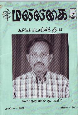 2003 ஆம் ஆண்டு நவம்பர் மாதம் வெளியான மல்லிகையில் நண்பரும் எழுத்தாளரும், பத்திரிகையாளருமான எம். ஏ. எம். நிலாம் பஷீர் பற்றிய பதிவை எழுதியிருந்தார்.