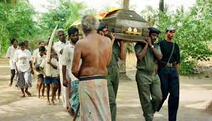 சவப்பெட்டி திறக்கப்படும்போது, போரிலே கொல்லப்பட்ட பண்டாரவின் சகோதரிமார் கதறி அழுகின்றனர்.