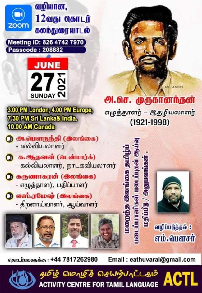 பழம்பெரும் எழுத்தாளரும் எளிமையாளருமான அளவெட்டி என்ற கிராமத்தைச் சேர்ந்த திரு.அ.செ.முருகானந்தம் அவர்களுக்கு எம்மால் நடத்தப்பட்ட கலை இலக்கிய சமூக மன்றமான அம்பனைக் கலைப்பெருமன்றம் 1973ஆம் ஆண்டில் சிந்தனைச் செல்வர் என்ற கௌரவ விருதளித்துக் கௌரவித்திருந்தது.அவ்வேளை இம்மன்றத்தின் தலைவராக திரு.ஆ.சிவநேசச்செல்வன் தலைவராகவும் நான் செயலாளராகவும் இருந்தோம்.கனடா இலண்டன் ஆகிய நாடுகளில் அதன் செயல்பாட்டாளர்கள் இருக்கிறார்கள்.கௌரவ விருதளித்த விழா மலரை பாதுகாத்து அதனை இவ்வேளை வெளிக் கொணர்ந்த யேர்மனி பேரிளினில் வாழுகின்ற எழுத்தாளரும் பனமுகச் சிந்தனையாளருமான திரு.நடராஜா சுசீந்திரன் அவர்களுக்கு மனமார்ந்த நன்றிகள்.![]()