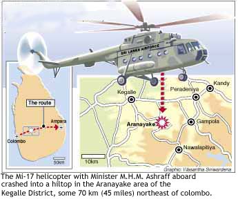கொழும்பிலிருந்து 110 கிலோமீற்றர் தூரத்தில் உள்ள அரநாயக்கப் பகுதியில் இருக்கும் “பைபில் றொக்” (Bibil Rock) மலைப்பகுதியின் மேலாக அந்த ஹெலிகொப்டர் பறந்து கொண்டிருந்த போது திடீர் விபத்துக்குள்ளானது. பலத்த வெடியோசையுடன் தீப்பிழம்பாக வானத்தில் வெடித்துச் சிதறியது. அமைச்சரும் அவருடன் பயணம் செய்த மேலும் 14 பேரும் அந்த விபத்தின் போது அந்த இடத்திலேயே உயிரிழந்தார்கள். ஹெலிகொப்டர் சிதைவுகளுக்கு மத்தியிலிருந்து கருகிய நிலையிலான சடலங்கள் மீட்கப்பட்டன. அமைச்சர் அஷ்ரபின் ஜனாஸாவை சப்ரகமுவ மாகாண சுகாதார அமைச்சர் லலித் திசாநாயக்க அடையாளம் காட்டினார். அமைச்சர் அஷ்ரப் ஹெலிகொப்டர் விபத்தில் சிக்கி மரணமானார் என்ற செய்தி கிழக்கு மாகாணத்தை எட்டிய போது அரசியல் பேதங்கள் மறந்து மக்கள் வாய்விட்டுக் கதறினார்கள். சோகம் தாழாமல் தாய்மார் தலையில் அடித்துப் புலம்பினார்கள். அமைச்சரை வரவேற்பதற்காக மாபெரும் தோரணங்கள் கட்டி அலங்கரிக்கப்பட்டிருந்த கிழக்கு மாகாண வீதியெங்கும் துயரவெள்ளம் கரைபுரண்டது. வரலாறு காணாத சோகத்தில் கிழக்கு மாகாணம் மூழ்கிப் போனது. தனது சொந்த சகோதரனை அல்லது தான் 10 மாதம் சுமந்து பெற்ற பிள்ளையை இழந்த துயரத்தில் தாய்மார்கள் தலையில் அடித்துக்கொண்டு கதறியழுதார்கள். கிழக்கு மாகாண மக்கள் செயலிழந்து நடைப்பிணமாக நின்றார்கள். கூடவே மின்சாரமும் தடைப்பட்டிருந்த நாள் அது. அந்த காட்சியை காணாதவர்கள் இலங்கை தாய்நாடு சுனாமியன்று எப்படி இருந்தது என்பதை கண்டு கொண்டால் போதுமானது.
