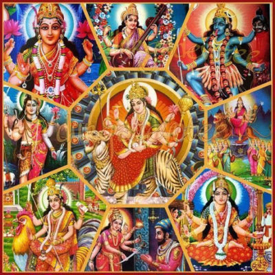 சக்தியின் வடிவங்கள் பற்பல.எந்தத் தேவைக்கு என்ன சக்தி தேவையோ அந்தச் சக்தியாய் – தாயாய் விளங்கும் ஆதிசக்தி வந்து நிற்பாள்.நாட்டின் ஆட்சி அதிகார த்தை நடத்தும் மந்திரிசபையில் பாதுகாப்பு, கல்வி, நிதி என்பதை நடத்துவதற் கென்று இருபது போல்- ஆதி சக்தியானவளும் உலக இயக்கத்துக்கு இன்றியமை யமையாதனவாகிய வீரம் , செல்வம், கல்விக்கும் பொறுப்பான சக்தியாய் வரு வதை நவராத்திரி விளக்கி நிற்கிறது எனலாம். துர்க்கை எனும் சக்தி வீரத்து க்கும், இலக்குமி எனும் சக்தி செல்வத்துக்கும், சரஸ்வதி எனும் சக்தி கல்விக் குமாய் அமைந்திருக்கிரது என்பது நோக்கத்தக்கதாகும்.