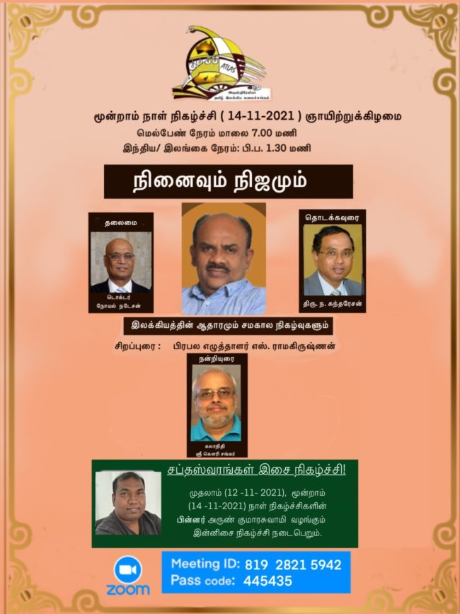 அவுஸ்திரேலியத் தமிழ் இலக்கிய கலைச்சங்கம். தமிழ் எழுத்தாளர் விழா 2021 – மூன்று நாள் நிகழ்ச்சிகள்.