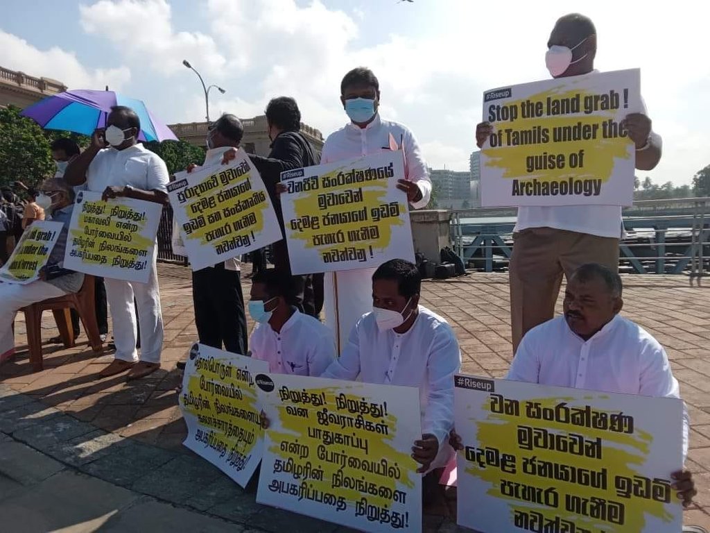 வடக்கு – கிழக்கில் வாழும் தமிழர்கள் இனவாதத்தின் கோரத்தாண்டவத்தினால் நிலங்களை பறிகொடுத்துள்ளனர். அந்நிலங்களில் இராணுவம் குடியமர்ந்துள்ளது. அத்துடன் பௌத்த விகாரைகள் அங்கு எழுகின்றன. குருந்தூர் மலை விவகாரம் ஒரு உதாரணம்.