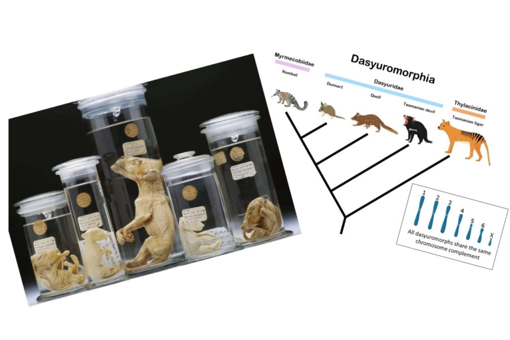 பேராசிரியர் அன்றூ தைலசின்களுக்கும் ‘நம்பட்’ (Numbat) எனும் சிறு அணில் போன்ற பிராணியின் நிறமூர்த்தத்திற்கும் 95% ஒற்றுமை இருப்பதை கண்டுபிடித்ததின் விளைவாக இந்த அணிலை செவிலித்தாயாக பாவித்து மறைந்த தஸ்மேனியன் புலியை மீள உருவாக்க முடியும் என நம்பிக்கை தெரிவித்தார். மெல்பேர்ன் அருங்காட்சியகத்தில் பாதுகாப்பாக கண்ணாடிக்குடுவையில் வைக்கப்பட்டிருந்த தஸ்மேனியன் புலிக்குட்டியிலிருந்தே ஒப்பீட்டிற்கு அவர் நிறமூர்த்தங்களை பெற்றுக்கொண்டார்.