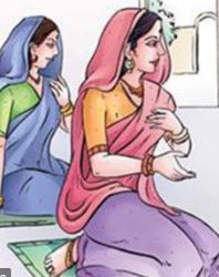 எதிரே தரையில் காலை மடித்து ஒருக்களித்து உட்கார்ந்து கணவனைப் பார்த்தபடியே