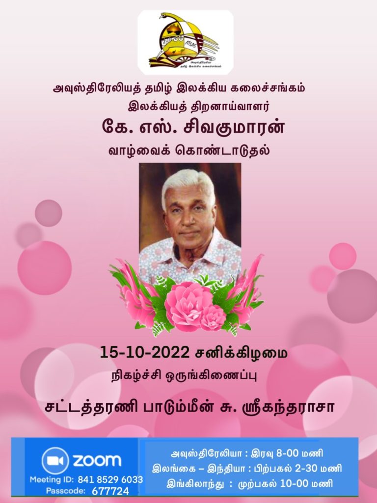 இலக்கியச்சோலைகே எஸ் சிவகுமாரன் நிகழ்ச்சி!October 4, 20220 October 4, 20220 Facebook Twitter LinkedIn Messenger Messenger WhatsApp Viber