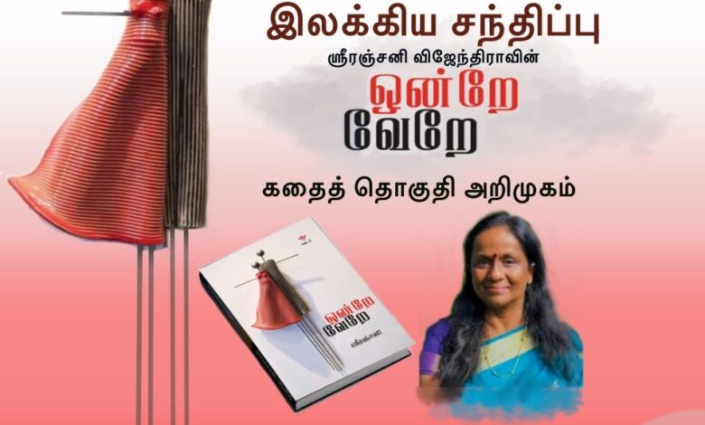 ஶ்ரீரஞ்சனியுடனான இலக்கிய சந்திப்பும், அவரது புதிய சிறுகதைத் தொகுதி ஒன்றே வேறே நூலின் அறிமுக அரங்கும் மெல்பனில் இம்மாதம் 30 ஆம் திகதி ( 30-10-2022 ) ஞாயிற்றுக்கிழமை மாலை 4-00 மணிக்கு அவுஸ்திரேலிய தமிழ் இலக்கிய கலைச்சங்கத்தின் ஏற்பாட்டில் ஒழுங்கு செய்யப்பட்டுள்ளது.