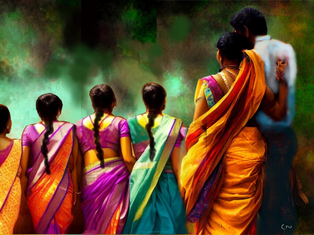 அவர்களில் ஒருத்தி „ என்ன புஸ்பா முகம் சிவந்திருக்கு „ என்று கேட்க „ என்ன நீ தெரியாத மாதிரிக் கேட்கிறாய்,முகத்தில் முகம் பார்த்தாள் எல்லாம் சிவக்குந்தானே’ என்று இன்னொருத்தி சொல்ல „எல்லாம் சிவக்குந்தானே „ என்ற உள்ளர்த்தம் விளங்கி அவளின் தோழிகள் சிரிக்கின்றனர்.