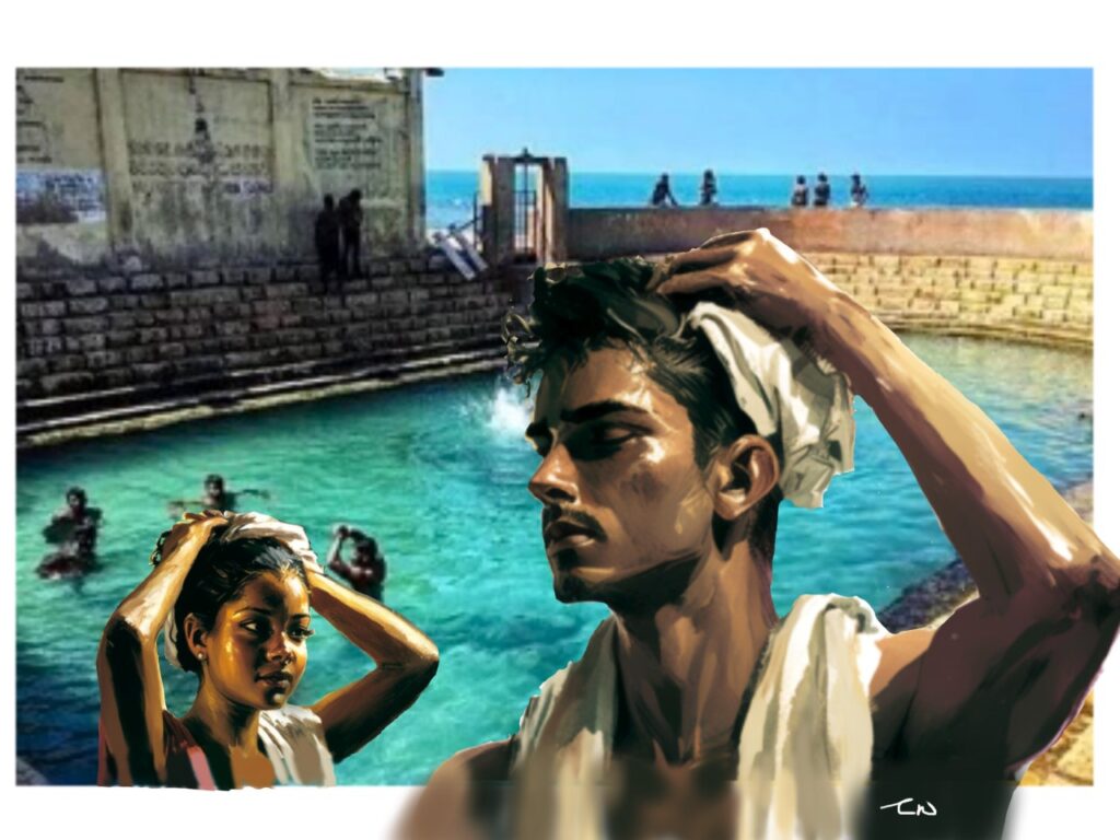 பெண்கள் ஆராவாரித்துக் குளிக்கும் சத்தம் ஆண்களின் கேணிக்குள் குளிக்கும் ஆண்களுக்கும்,ஆண்கள் ஆராவாரித்துக் குளிக்கும் சத்தம் பெண்களின் கேணியில் குளித்துக் கொண்டிருக்கும் பெண்களுக்கும் கேட்கும்.