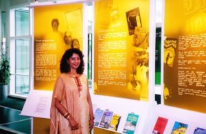 உருவப்படங்களும் அவர்கள் பெற்ற விருதுகளும் காட்சிக்கு வைக்கப்பட்டிருந்தன.அருகிலே – சுவரில் பொருத்தப்பட்டிருந்த ஒரு தொலைக்காட்சிப் பெட்டி, நூலகம்இயங்கும் நேரங்களில் தொடர்ச்சியாக இந்த இலக்கிய முன்னோடிகளைப்பற்றிகாட்சிப்படுத்திக்கொண்டிருக்கிறது. இக்காட்சியகம் ஆவணகமாகவே திகழுகிறது.