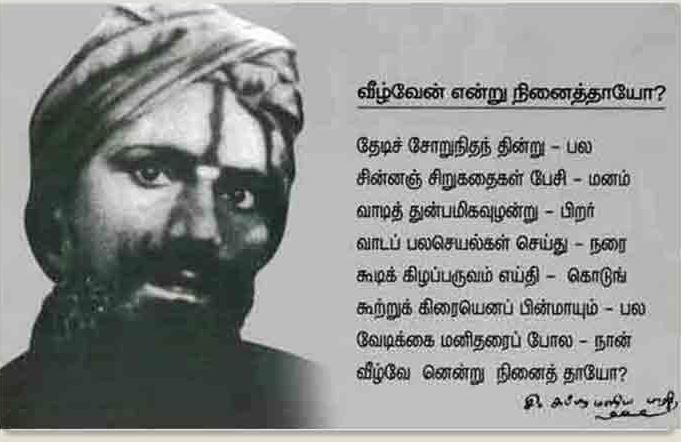 என்று சொன்ன மகாகவி சுப்பிரமணிய பாரதியார் தனது வாழ்வில் எத்தனைஇன்னல்களை கண்டார். வறுமையில் வாடினார் .வீழ்ந்தாரா…?