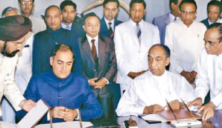இந்த ஒப்பந்தத்தில் இலங்கையின் சார்பில் கைச்சாத்திட்ட இலங்கையின் முன்னாள் ஜனாதிபதி ஜே ஆர் ஜெயவர்த்தன தானாக மனம் விரும்பி அதனைச் செய்யவில்லை. 13 ஆவது அரசியலமைப்புச் சட்டத் திருத்தத்தைக் கூட அதன் நகலை முன்கூட்டியே இந்தியாவின்