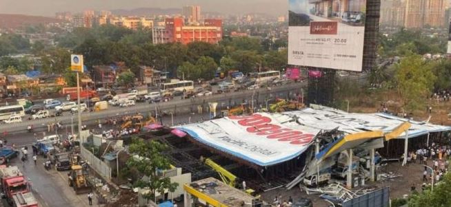 மும்பை நகரில் வீசிய பலத்த காற்றினால் இந்த விளம்பர பலகை இடிந்து விழுந்ததாக இந்திய ஊடகங்கள் செய்தி வெளியிட்டுள்ளன.