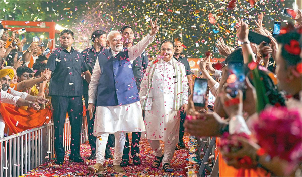 நாடாளுமன்ற மக்களவைத் தேர்தலில் பாஜக கூட்டணி 3-வதுமுறையாக வெற்றி பெற்றுள்ளது. எனினும், பாஜகவுக்கு தனிப்பெரும்பான்மை கிடைக்கவில்லை. தெலுங்கு தேசம், ஐக்கிய ஜனதா தளம் உள்ளிட்ட கட்சிகளுடன் இணைந்து கூட்டணி ஆட்சியை அமைக்க பாஜக திட்டமிட்டுள்ளது. நரேந்திர மோடி 3-வது முறையாக பதவியேற்க உள்ளார்.