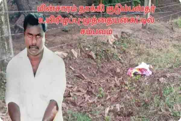 முத்துவிநாயகபுரம் முத்துஐயன்கட்டு ஒட்டுசுட்டானை சேர்ந்த 45 அகவையுடைய காசிலிங்கம் லங்காதீபன் என்பவே இவ்வாறு மின்சாரம் தாக்கி உயிரிழந்துள்ளார்.