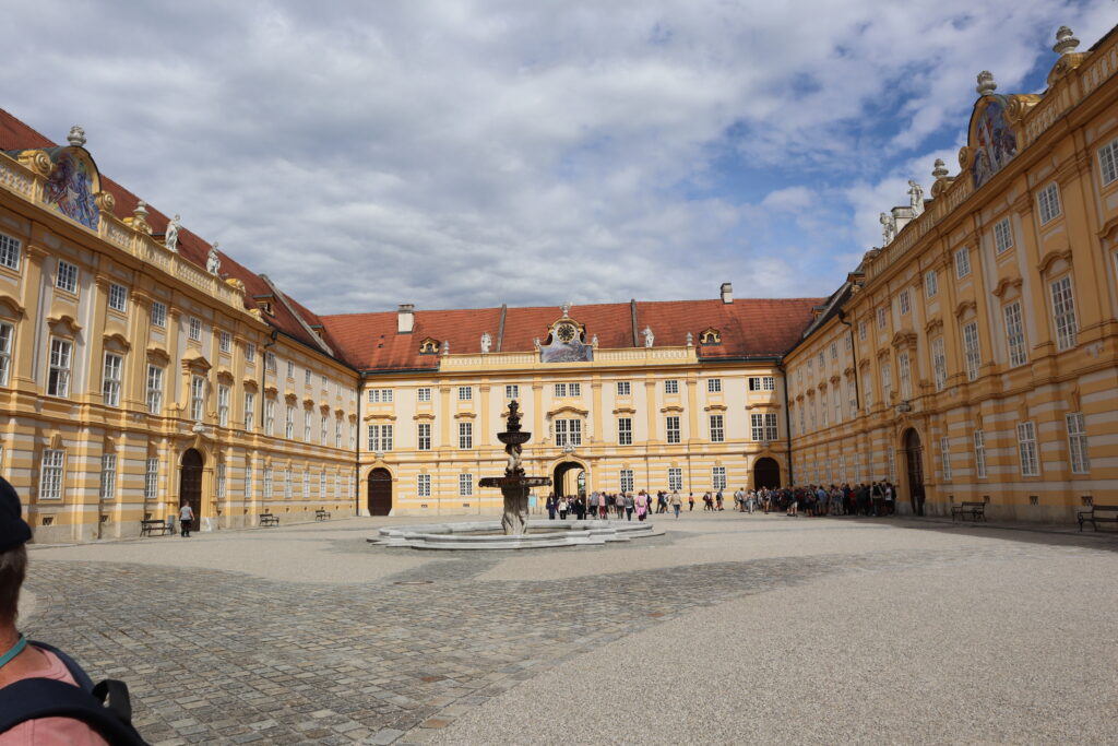 வீயன்னாவிலிருந்து மெல்க் (Melk) என்ற சிறிய நகரத்திற்குப் படகு சென்றபோது அங்கு 900 வருடங்கள் பழமையானதும், யுனெஸ்கோவால் அங்கீகரிக்கப்பட்டதுமான குருக்கள் மடம் (Melk Abbey) உள்ளது . அது உலகப் பிரசித்தி பெற்ற ஒரு பெரிய கட்டிடம். அதாவது ஃபிரான்சிஸ்கன் பிரிவைச் சேர்ந்த கத்தோலிக்க குருமார்கள் படிப்பதற்கும் வணங்குவதற்குமாக அமைந்த இந்த இடத்தில் தற்பொழுது கல்விச்சாலையுடன் பெரிய லைபிரறி உள்ளது. முக்கியமாகப் பல பண்டைய நூல்களின் மூலப் பிரதிகள் உள்ளன. இதையையே ஐரோப்பாவின் சிறந்த ஒரு பரோக் வடிவமைப்பு கட்டிடமாகக் கருதுகிறார்கள்.