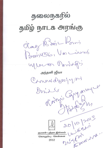 * ஈழத்தில் தமிழ் நாடகங்கள்(1981) – ‘அகரம்’ வெளியீடு, சிவகங்கை தமிழ்நாடு.