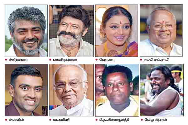இதுபோல, தமிழகத்தை சேர்ந்த தொழிலதிபர் நல்லி குப்புசாமி, நடிகர் அஜித்குமார், நடிகை ஷோபனா சந்திரகுமார், ஆந்திராவை சேர்ந்த நடிகர் நந்தமூரி பாலகிருஷ்ணா, பிஹார் முன்னாள் துணை முதல்வர் மறைந்த சுஷில் குமார் மோடி உள்ளிட்ட 19 பேருக்கு பத்ம பூஷண் விருதுகள் அறிவிக்கப்பட்டுள்ளன.
