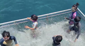 இப்படியாக பவளப் பாறைகளை பார்வயிட்ட பின் கப்பலுடன் இணைக்கபட்டிருந்த