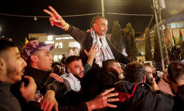யுத்த நிறுத்த உடன்படிக்கையின் ஒரு பகுதியாக இவர் விடுதலை செய்யப்பட்டுள்ள நிலையில் மேற்கு கரையில் பெருமளவானவர்கள் இவரை வரவேற்றனர்.