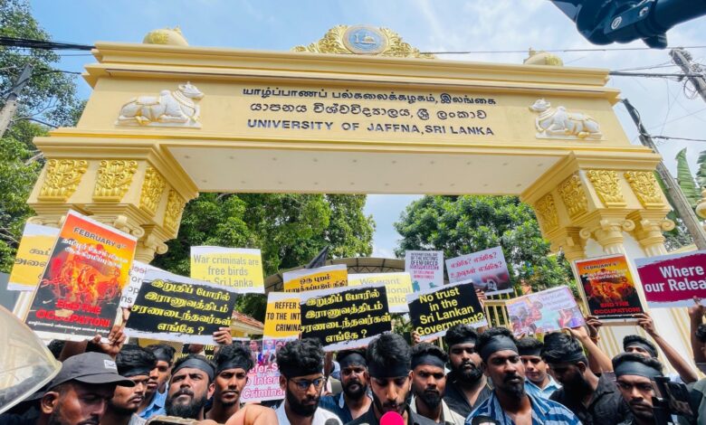 யாழ் பல்கலை கழக பிரதான வாயிலின் முன்பாக இன்றைய தினம் செவ்வாய்க்கிழமை காலை 11 மணியளவில் இந்த போராட்டத்தில் ஈடுபட்டனர்.