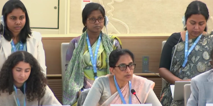 மனித உரிமைகள் பேரவையின் 58 ஆவது அமர்வில், ஜெனீவாவில் உள்ள ஐ.நா.வுக்கான இலங்கையின் நிரந்தரப் பிரதிநிதி ஹிமாலி அருணதிலகா, அரசியலமைப்பு கட்டமைப்பிற்குள் நம்பகமான மற்றும் சுயாதீனமான உள்நாட்டு செயல்முறைகள் மூலம் மனித உரிமைகள் சவால்களை எதிர்கொள்வதற்கான இலங்கையின் உறுதிப்பாட்டை வலியுறுத்தினார்.