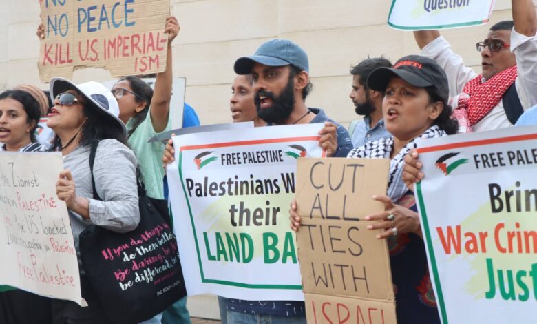 கொழும்பில் அமெரிக்க தூதரகத்தின் முன்பாக சுதந்திர பலஸ்தீன இயக்கம் ஏற்பாடு செய்திருந்த ஆர்ப்பாட்டத்தில் பெருமளவானோர் கலந்துகொண்டனர்.
