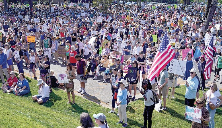 வர்த்தக வரி விதிப்பு, அரசுப் பணிகளில் ஆட்குறைப்பு, மக்களின் சுதந்திரத்தை பறிக்கும் நடவடிக்கைகளில் டொனால்டு ட்ரம்ப் எல்லை மீறி செயல்படுவதாக கூறி, வாஷிங்டன், நியூயார்க், ஹுஸ்டன், ப்ளோரிடா, கொலராடோ, லாஸ் ஏஞ்சல் உள்ளிட்ட அமெரிக்காவின் முக்கிய நகரங்களில் நேற்று முன்தினம் பல்லாயிரக்கணக்கானோர் ஒன்று திரண்டு ட்ரம்புக்கு எதிரான முழக்கங்களை எழுப்பினர்.