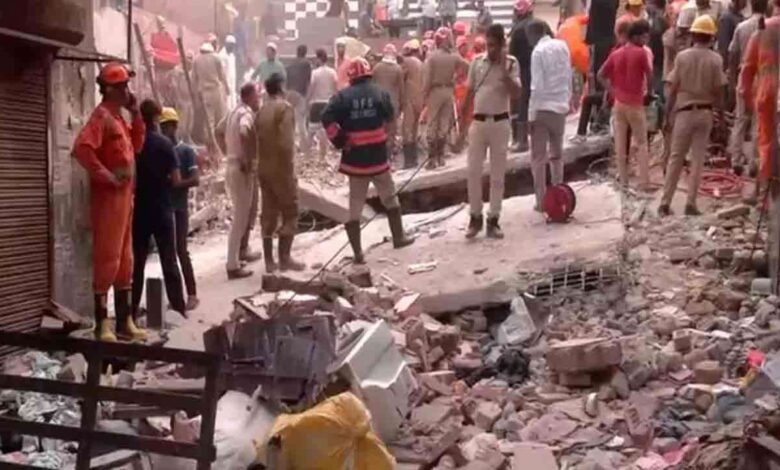 கட்டிடம் இடிந்து விழுந்த நிலையில், தகவலறிந்த தேசிய பேரிடர் மீட்புப் படை (NDRF), தீயணைப்பு வீரர்கள் மற்றும் டெல்லி பொலிஸ் மீட்புக் குழுக்கள் சம்பவ இடத்திற்கு விரைந்தன.