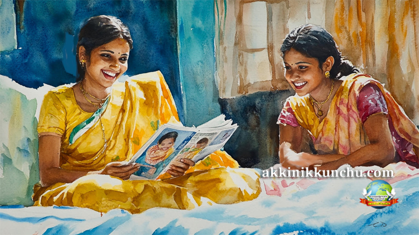அதற்குள் வார இதழை புரட்டிப் பார்க்கத் தொடங்கியிருந்த அட்சயாவிடமிருந்து வெடுக்கென வாங்கி “மொதல்ல இந்தக் கதையப் படி.. இதப்பத்திதான் அவகிட்ட பேசிக்கிட்டு இருந்தேன்”