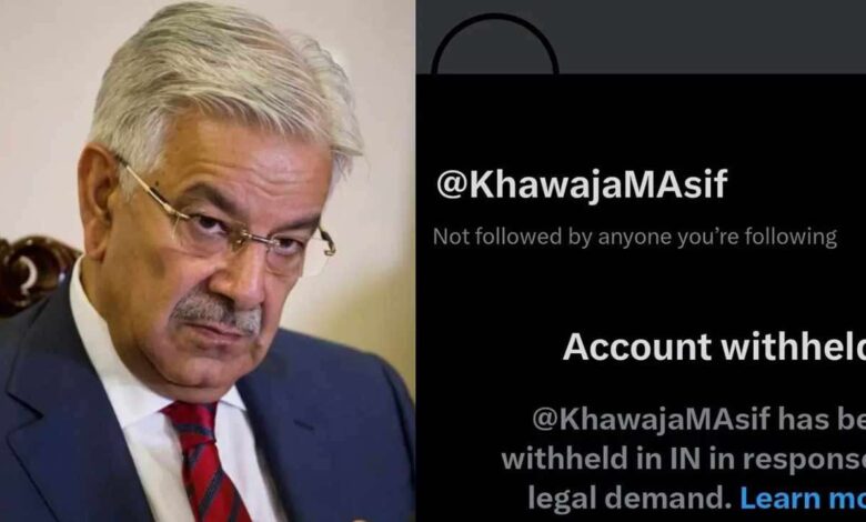 பாகிஸ்தான் பாதுகாப்பு அமைச்சர் குவாஜா ஆசிப்பின் X கணக்கு இந்தியாவில் முடக்கப்பட்டுள்ளது. முன்னதாக கடந்த வாரம் பாகிஸ்தான் அரசின் அதிகாரப்பூர்வ இணையதளம் முடக்கப்பட்டது. அமைச்சர் குவாஜா ஆசிப், “இந்திய இராணுவம் விரைவில் ஊடுருவும்; நாங்கள் தயாராக உள்ளோம்” என்று பேசியிருந்தது குறிப்பிடத்தக்கது.