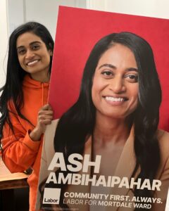 அத்துடன் 66 சதவீதத்துக்கு மேல் வாக்குகள் பெற்று வெற்றியீட்டி அவுஸ்திரேலிய பாராளுமன்றம் செல்கிறார். வெற்றியீட்டியிருக்கும் தமிழ்ப் பெண்ணான அஷ்வினி அம்பிகைபாகர் உலகத் தமிழருக்குப் பெருமை சேர்ப்பவராக அமைகிறார். 2022 இல் கோர்ஜெஸ் றிவர் கவுன்சிலராகத் தெரிவாகியிருந்த அவர் ஒரு சட்ட நிபுணராகவும் பயிற்றப்பட்டவர்.