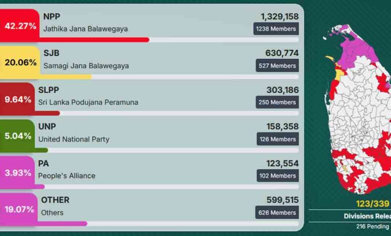 தேசிய மக்கள் சக்தி (NPP) – 2,587,349 வாக்குகள் – 2,276 உறுப்பினர்கள்