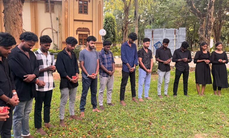 யாழ் . பல்கலை முள்ளிவாய்க்கால் நினைவு தூபி முன்பாக அஞ்சலி