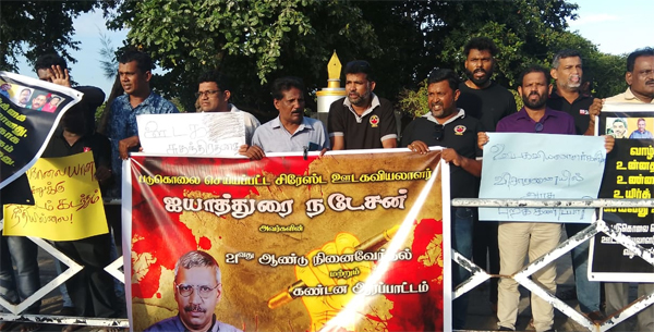 படுகொலை செய்யப்பட்ட மட்டக்களப்பு ஊடகவியலாளர் ஐயாத்துறை நடேசனின் 21ஆவது ஆண்டு நினைவுதின அஞ்சலி நிகழ்வும், படுகொலைக்கான நீதிகோரிய கவனயீர்ப்பு போராட்டமும் மட்டக்களப்பு காந்தி பூங்காவில் (31) மாலை இடம்பெற்றது.